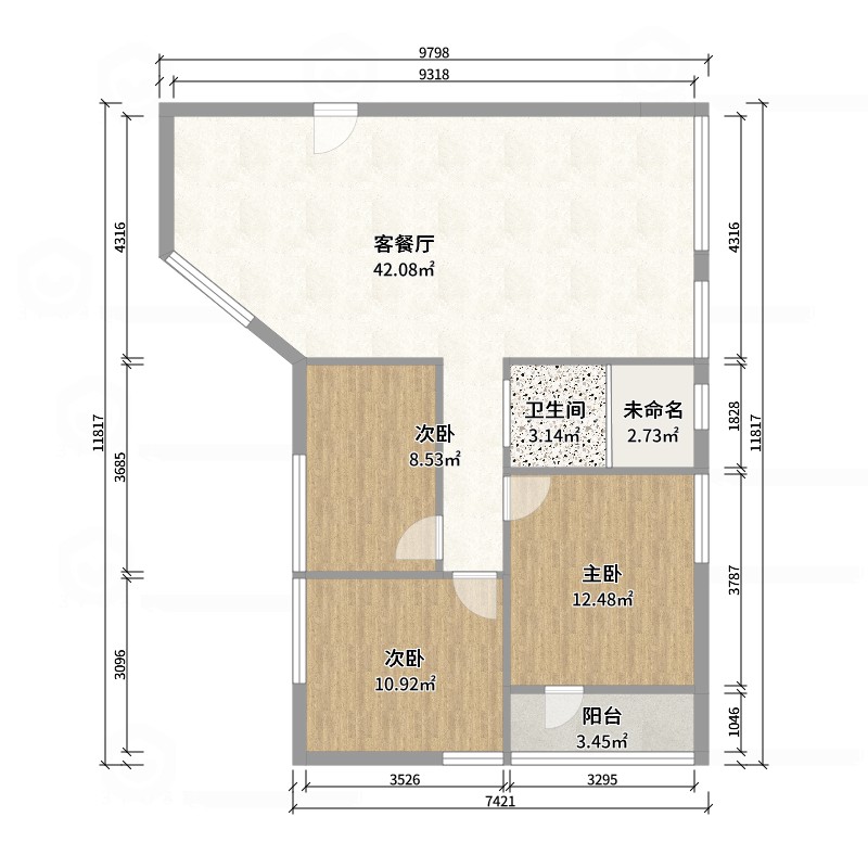 2.求增加玄关,设置电视墙利于沙发摆放。