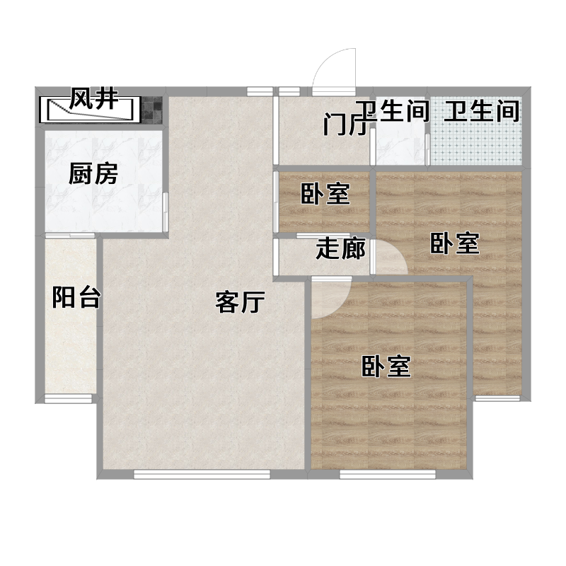 1房间只有两个卧室,想在主卧室设计一个榻榻米。以增加居住空间。